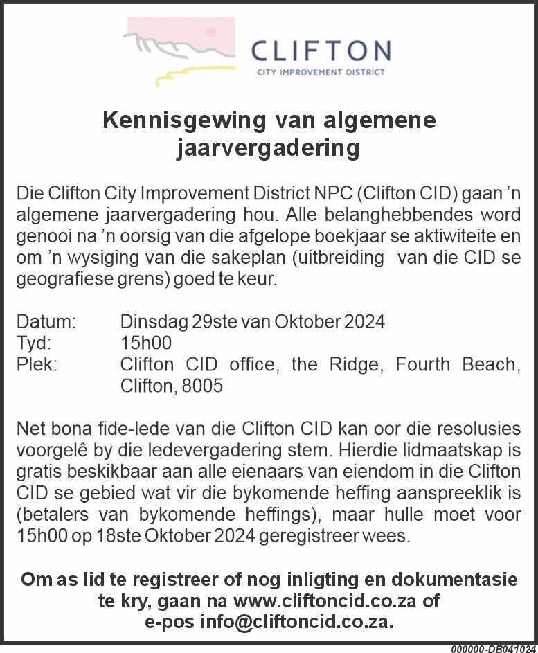 • Clifton CID Company Secretary: Ursula Genthe | ursula@accounts-star.co.za