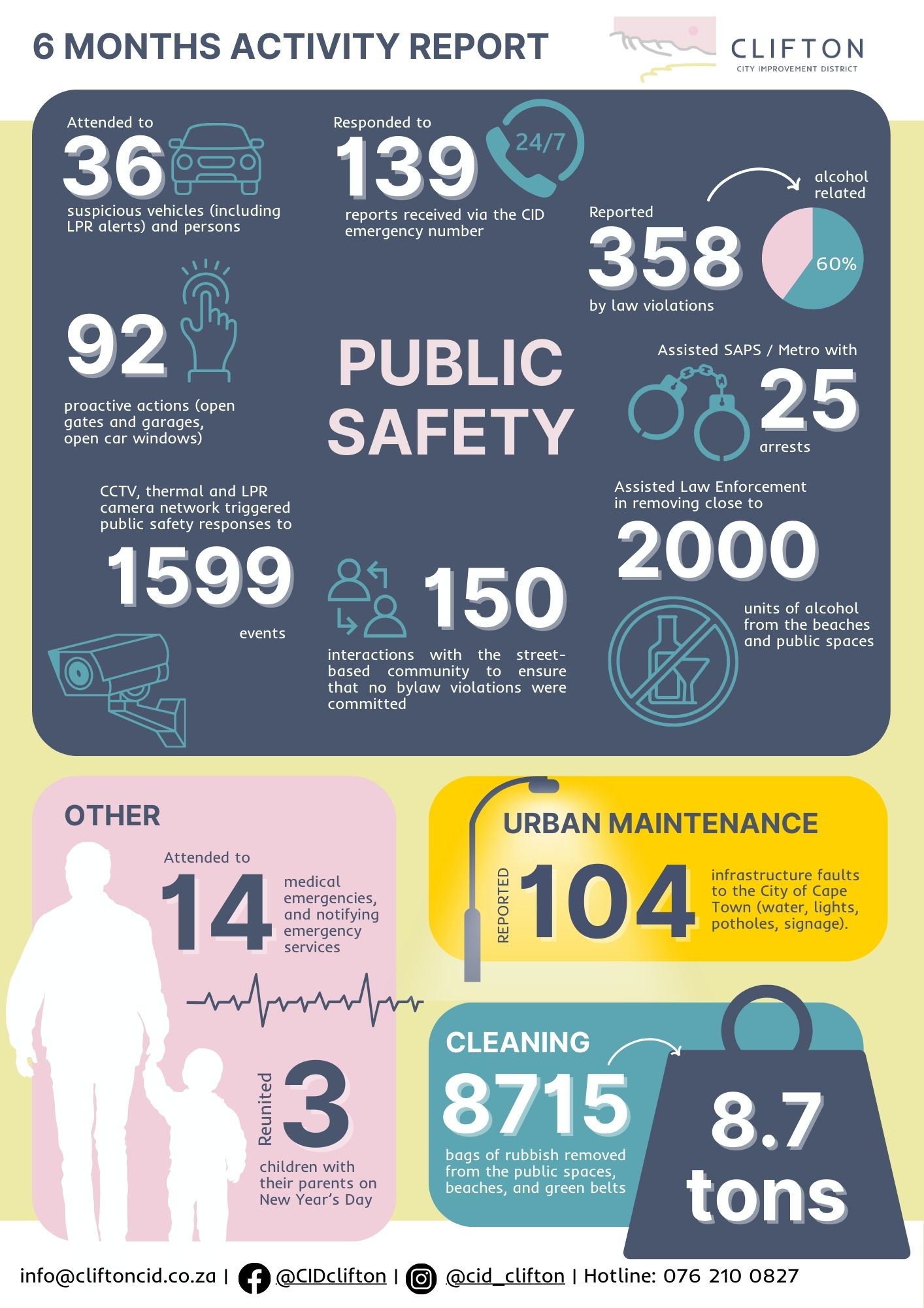 Our stakeholder relationships are strong, both with community organisations as well as City and national structures such as SAPS, law enforcement, the Ward Councillor, numerous City departments, The Glen Country Club, the Clifton Surf Lifesaving Club and the Bungalow Owners Association.